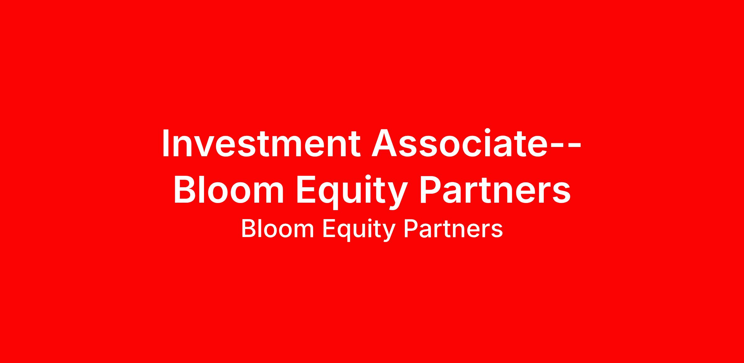 At Bloom Equity, we are analytically minded, curious by nature, and voracious learners. We welcome people from different backgrounds, experiences, abilities, and perspectives. We are an equal opportunity employer with an inclusive working environment.